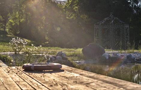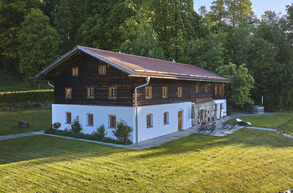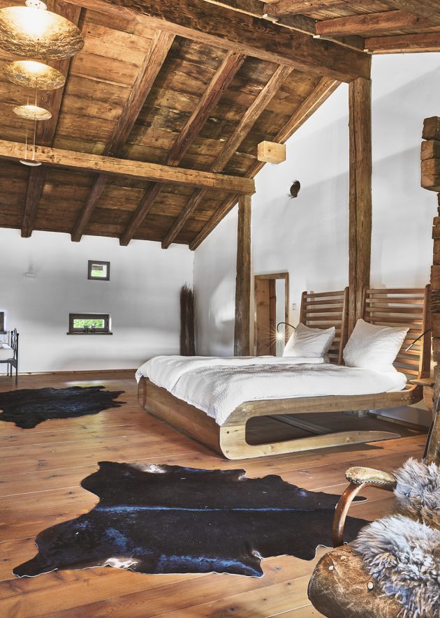 Wo es möglich war, wurden alte Balken und Böden erhalten. Ein historischer, gusseisener Ofen sorgt im Wohnzimmer für wohlige Wärme, die gemütliche Stimmung wird durch die dezente Beleuchtung unterstützt. Neben modernen Designer-Möbeln stehen Antiquitäten und handgefertigte Unikate.