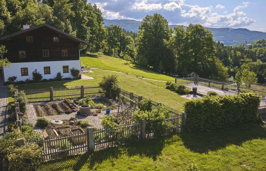 Genießen Sie die Romantik des Hofs: trinken Sie reines Wasser aus der eigenen Quelle vom historischen Wassergrand, pflücken Sie Beeren und ernten Sie Gemüse und Kräuter im eigenen Bio-Garten oder backen Sie Brot im historischen Steinbackofen. Sorgen Sie für sich selbst und leben Sie im Einklang mit der Natur.